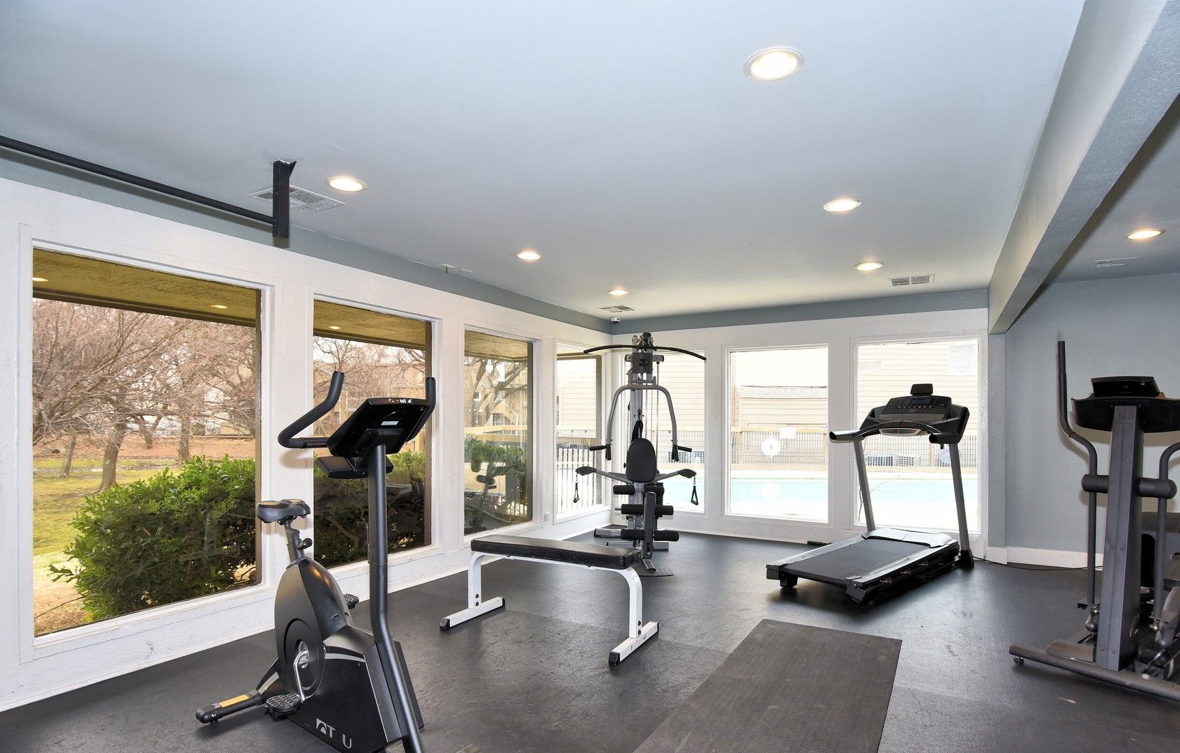 •On-site fitness room and saltwater pool with sundeck