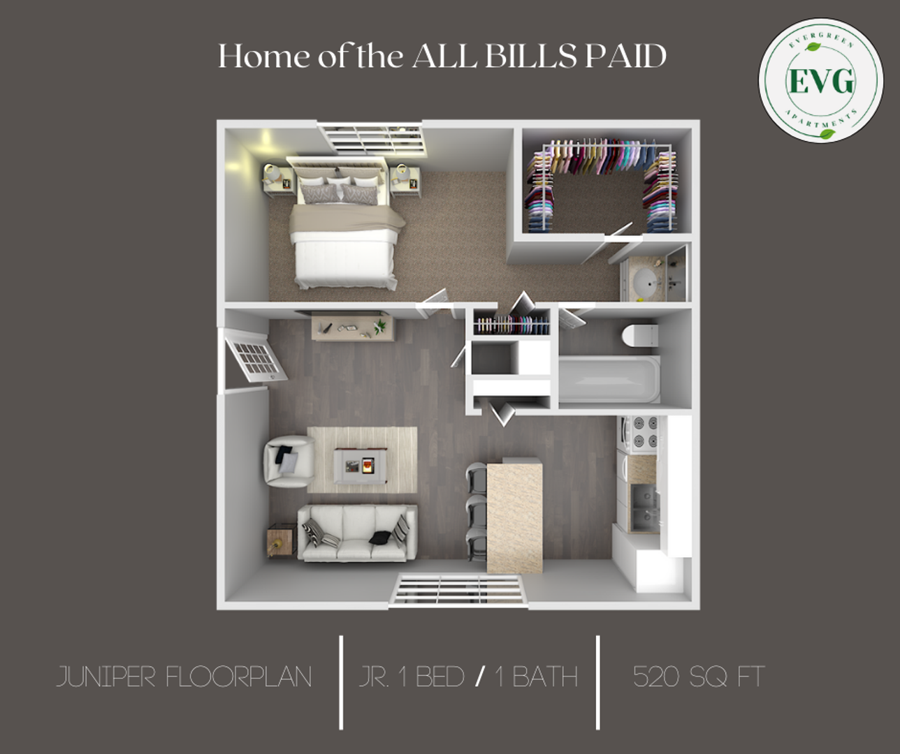 EVERGREEN APARTMENTS, HOME OF THE ALL BILLS PAID!